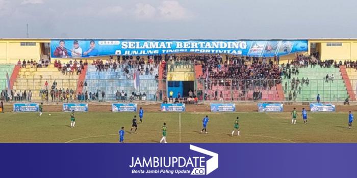 JAMBIUPDATE.CO, MUARATEBO - Disaksikan ribuan penonton, pertandingan kesebelasan Kota Jambi Vs Kabupaten Tebo berlangsung seru. Berlaga di Stadion Sri Maharaja Batu, Kabupaten Tebo harus kebobolan di menit ke 36. Namun pada menit 46 Muhammad Nasta nomor punggung 10 pemain asal Tebo berhasil membalas kesebelasan Kota Jambi sehingga skor imbang 1:1 bertahan hingga akhir pertandingan.