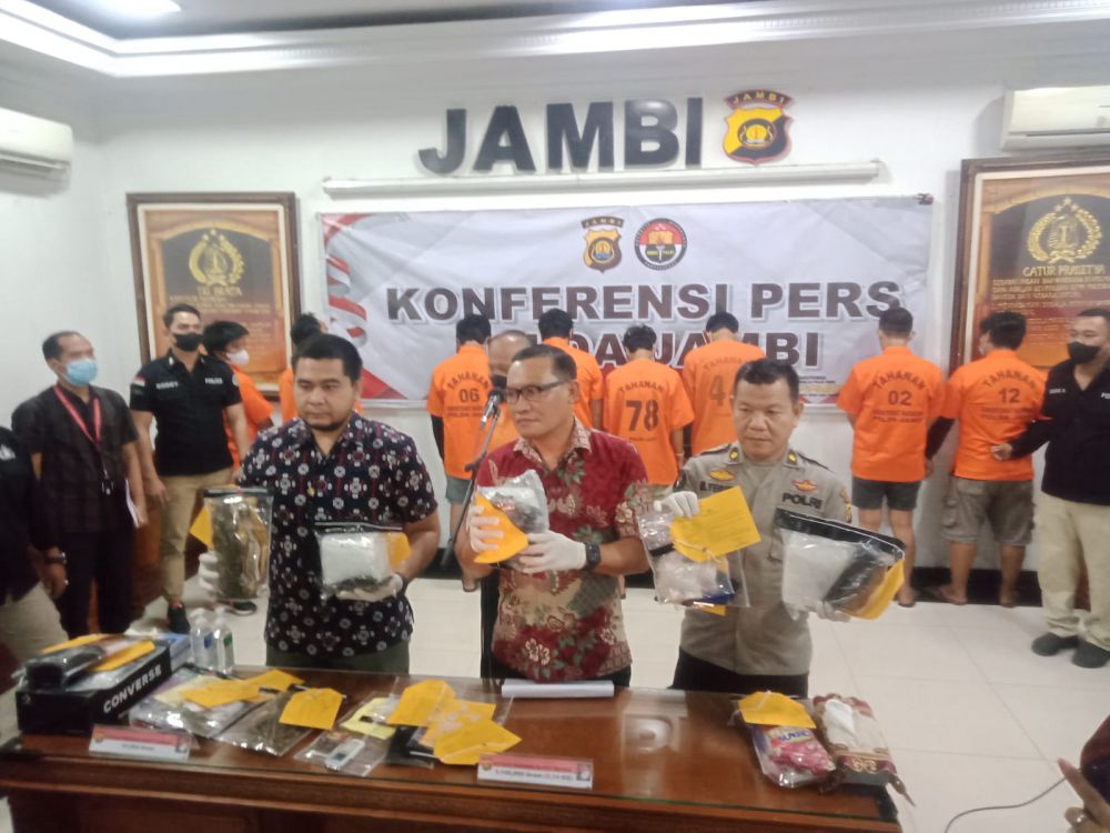 JAMBIUPDATE.CO, JAMBI - Direktorat Reserse Narkoba (Ditresnarkoba) Polda Jambi berhasil mengamankan sebanyak 8 tersangka penyalahgunaan narkotika dengan inisial NP, SP, GL, AG, RD, RY, RS, dan NV.