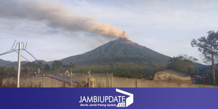 JAMBIUPDATE.CO, KERINCI - Gunung Kerinci kembali erupsi pada pagi ini, ketinggian Abu vulkanik 750 M dari puncak gunung tertinggi di Sumatera, Sabtu (14/1/2023).