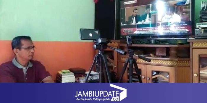 JAMBIUPDATE.CO, JAMBI- Ayah Brigadir Yosua Hutabarat atau Brigadir J, Samuel Hutabarat, memperhatikan ekspresi Ferdy Sambo saat sidang tuntutan di Pengadilan Negeri Jakarta Selatan. Ia menyaksikan persidangan ini melalui televisi di kediamannya yang berada di Sungai Bahar, Muaro Jambi, Selasa (17/1).