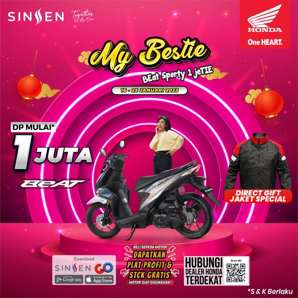 “Program menarik tersebut berupa DP ringan mulai dari Rp 1 Juta saja dan free gift jaket spesial khusus pembelian Honda BeAT Sporty Series dengan syarat dan ketentuan berlaku. Program ini berlaku mulai tanggal 16 – 25 Januari 2023” ujar Hendy.