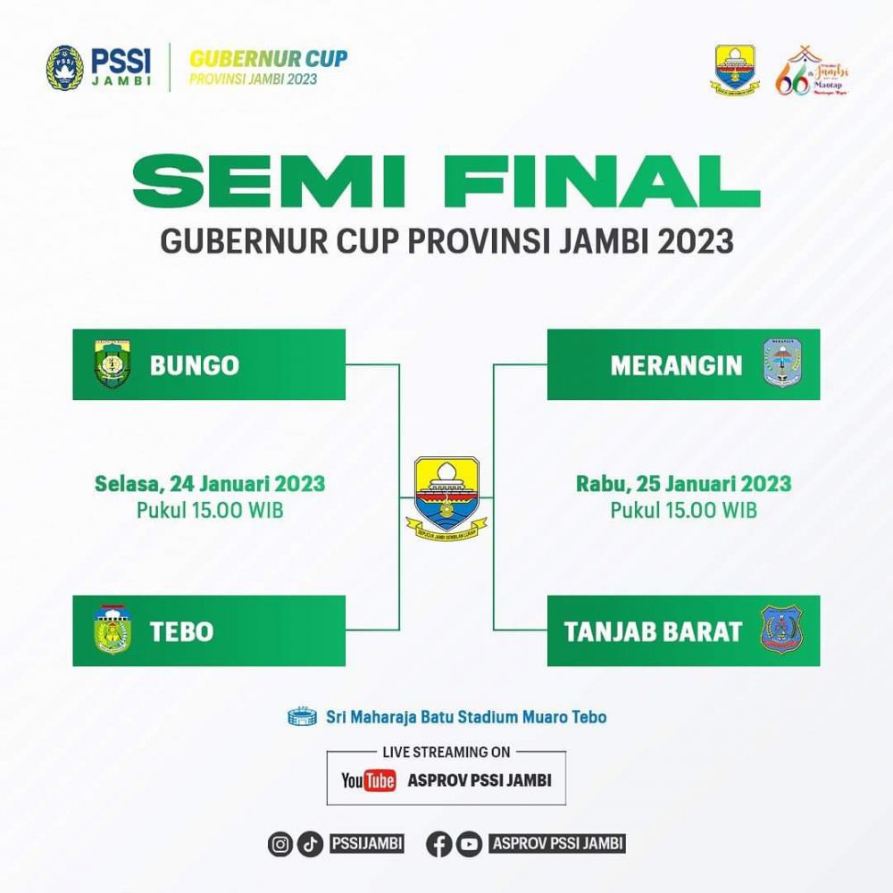 Bungo berstatus juara Grup A sementara Tebo merupakan Runner Up Grup B. Sementara laga lainnya akan tersaji antara Tanjabbar yang merupakan runner up Grup A dengan Merangin sebagai juara di grup B.