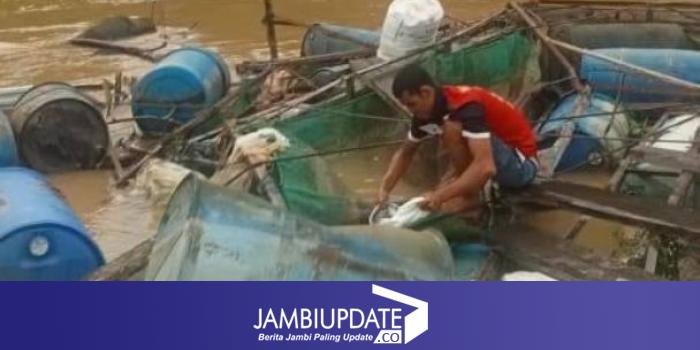 JAMBIUPDATE.CO, BATANGHARI - Hanyutnya ratusan kerambah jaring apung (KJA) budidaya ikan milik para petani di Desa Aro, Kecamatan Muara Bulian, Kabupaten Batanghari, saat ini menyebabkan para petani merugi. Bahkan dari informasi yang didapatkan, kerugian diperkirakan mencapai dua miliar rupiah. Rabu (25/01).