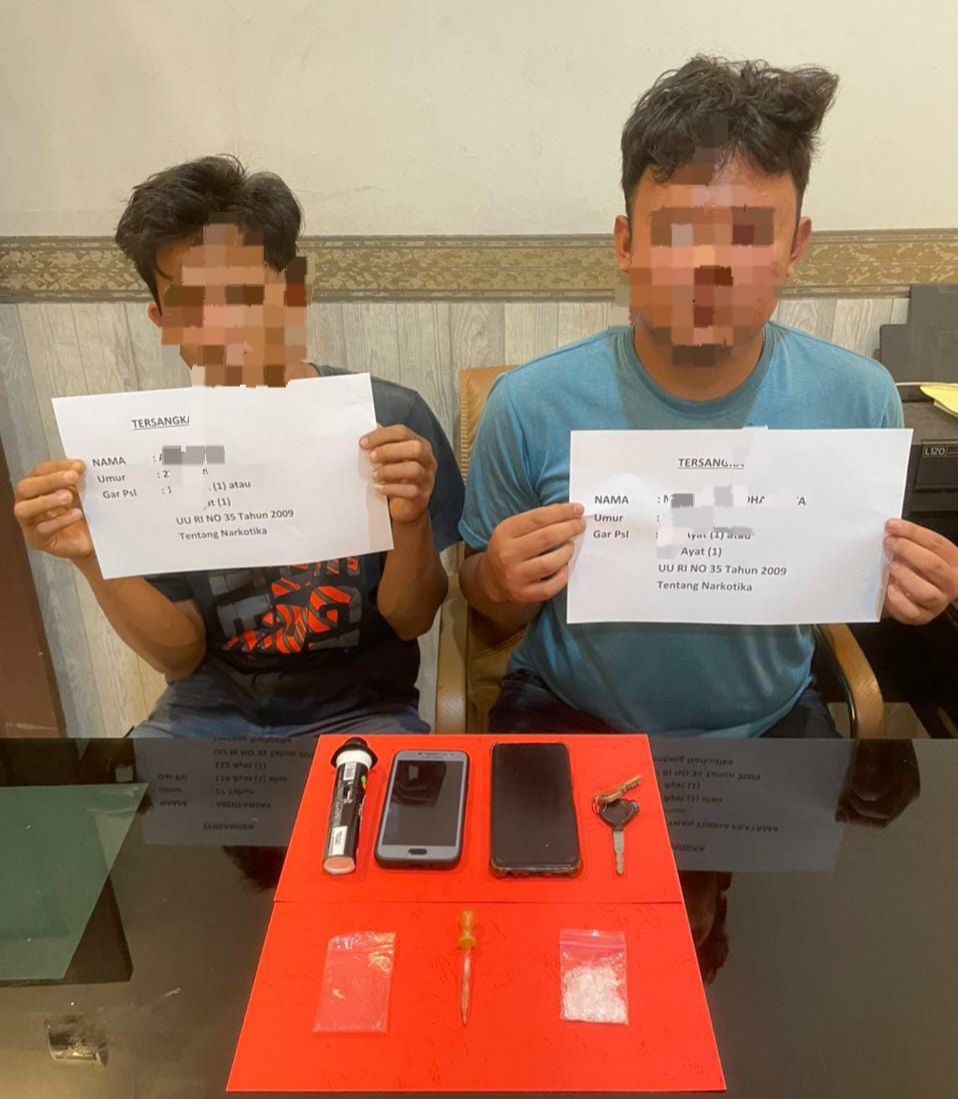 "Didapati 1 paket sedang yang diduga narkotika jenis sabu yang berada di atas tanah dekat kedua pelaku dan 1 buah kaca pirek di dalam kantong celana pelaku Ardiansyah," kata Niko.
