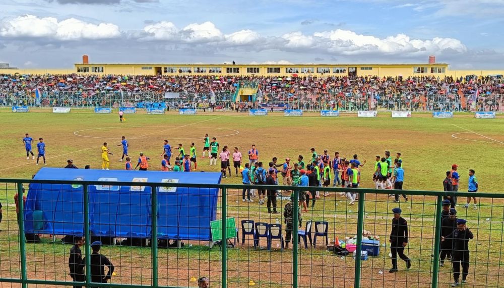 JAMBIUPDATE.CO, MUARATEBO - Dihadapan puluhan ribu penonton yang memadati Stadion Sri Maharaja Batu Kabupaten Tebo, Pertandingan Final Gubernur Cup 2023 antara Tim tuan rumah Kabupaten Tebo vs Kabupaten Merangin berlangsung panas. Jual beli serangan terjadi dari dari kedua kesebelasan sejak dimulainya pertandingan.