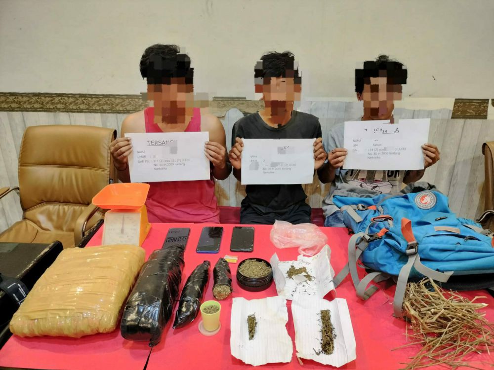 Selain tersangka dan barang bukti ganja, polisi turut mengamankan 3 unit handphone, 1 unit timbangan, 1 pack kertas papir, dan 2 buah tas ransel.