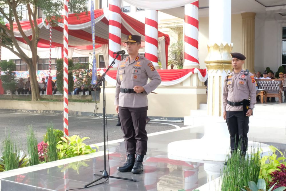 Pada kesempatan tersebut, Kapolda Jambi membacakan amanat Kepala Kepolisian Negara Republik Indonesia Jenderal Polisi Listyo Sigit Prabowo.