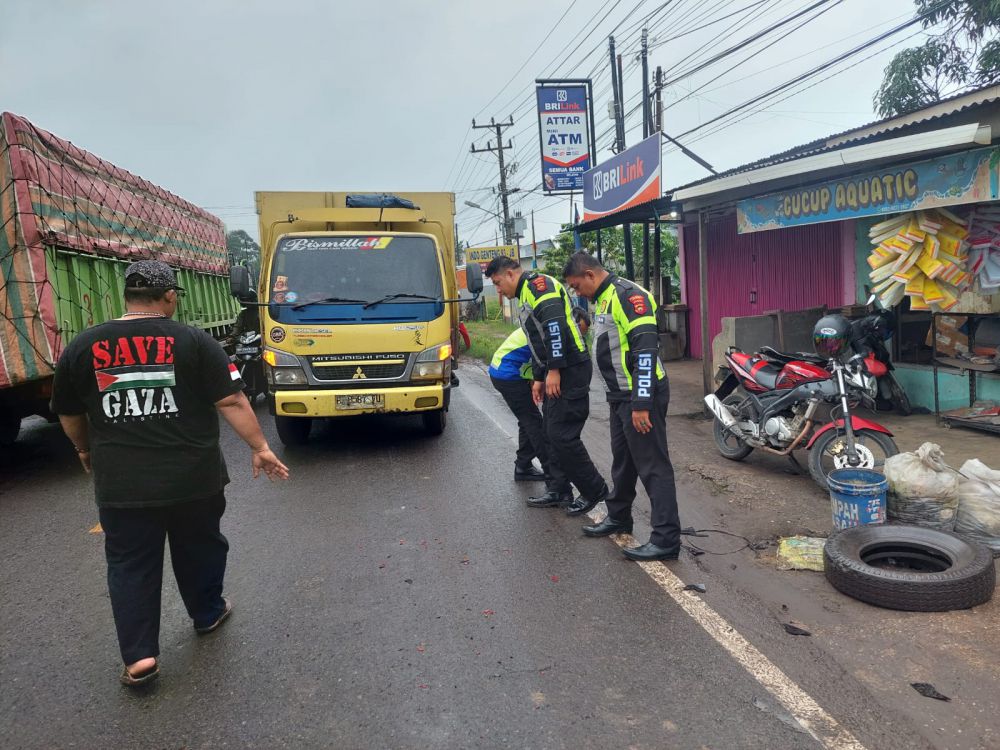 Namun, tiba-tiba satu unit truk lainnya dengan nomor polisi BH 8298 SF datang dari arah belakang dan menabrak pengendara sepeda motor yang berujung terjadinya tabrakan beruntun.