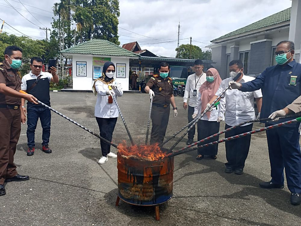Digelar di halaman kantor Kejaksaan Negeri Sungaipenuh pemusnahan yang dipimpin oleh Kepala Kejaksaan Negeri Sungaipenuh, Antonius Despinola itu dilakukan terbuka dan disaksikan Kepala Pengadilan Negeri Sungaipenuh, Polres Kerinci, BPOM dan Dinas Kesehatan serta sejumlah awak media.