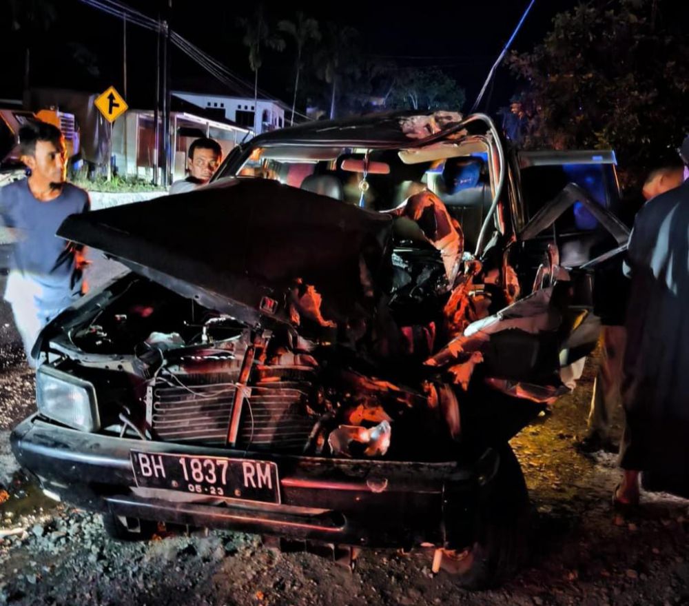 "Iya kecelakaan parah di jalan nasional dekat Sanggarang Agung danau Kerinci tadi. Ado tiga mobil yang bertabrakan dan rusak parah, " kata sumber dilapangan