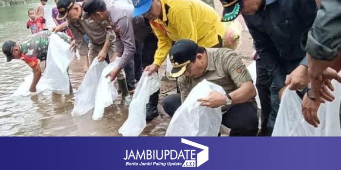 JAMBIUPDATE.CO, SAROLANGUN – Dalam rangka restocking untuk melestarikan keanekaragaman sumber daya ikan di perairan umum seperti sungai Batang asai, Penjabat Bupati Sarolangun Henrizal, melakukan kunjungan kerja ke Desa Bathin Pengambang, Kecamatan Batangasai, untuk melakukan pelepasan benih ikan nilam sebanyak 20 ribu ekor di Lubuk Larangan, Sungai Batang Asai Desa Bathin Pengambang.