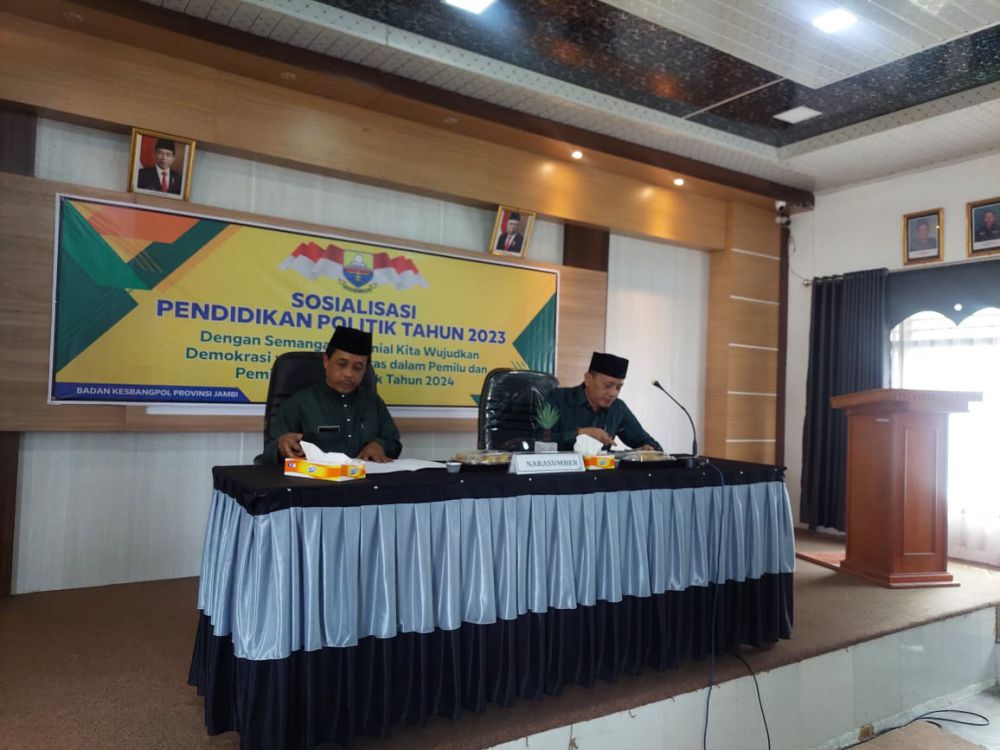 JAMBIUPDATE.CO, BATANGHARI - Wakil Ketua Komisi I DPRD Provinsi Jambi Kamaludin Havis menjadi narasumber sosialisasi pendidikan politik tahun 2023 di Kabupaten Batanghari.