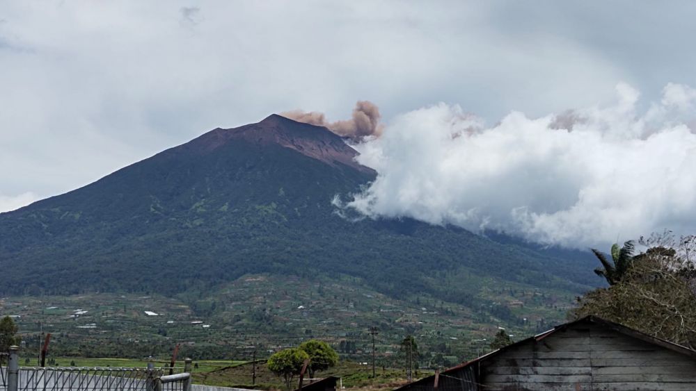Kepala pos pengamatan gunung api Kerinci Irwan mengakan telah terjadi erupsi Gunung Kerinci, Jambi, Sumatera Barat pada tanggal 15 Februari 2023 pukul 12:07 WIB dengan tinggi kolom abu teramati ± 200 m di atas puncak (± 4.005 m di atas permukaan laut).