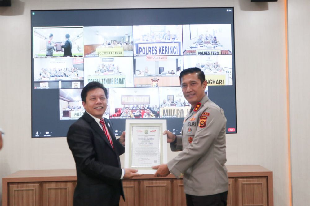 Lebih lanjut dikatakannya penghargaan dan apresiasi atas kinerja yang ia berikan merupakan sebuah dedikasi dan segala upaya terbaik yang telah dilakukan oleh Polda Jambi dan polres jajaran dalam mengelola dan menjaga situasi kamtibmas.