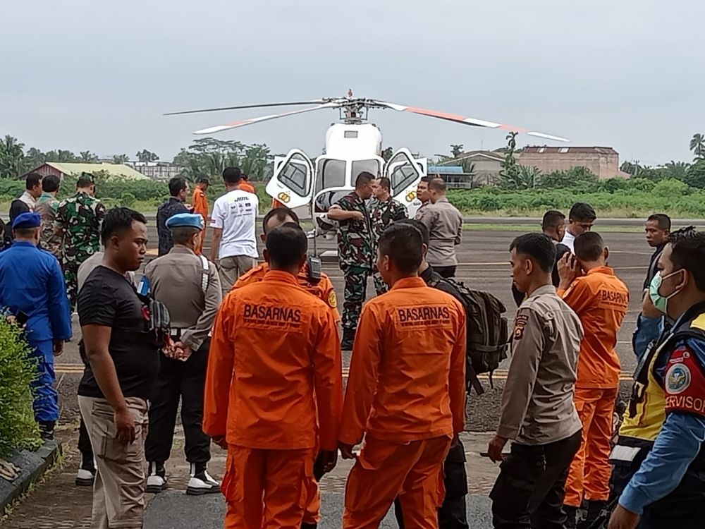 Pantauan media ini, beberapa orang terlihat berada di heli tersebut dengan membawa ransum dan selimut.