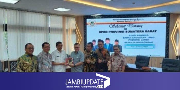 JAMBIUPDATE.CO, JAMBI - Anggota Badan Anggaran (Banggar) DPRD Provinsi Jambi studi banding ke DPRD Provinsi Sumatera Barat dalam membahas soal pokok pikiran (pokir) dan anggaran di tahun 2024 mendatang.