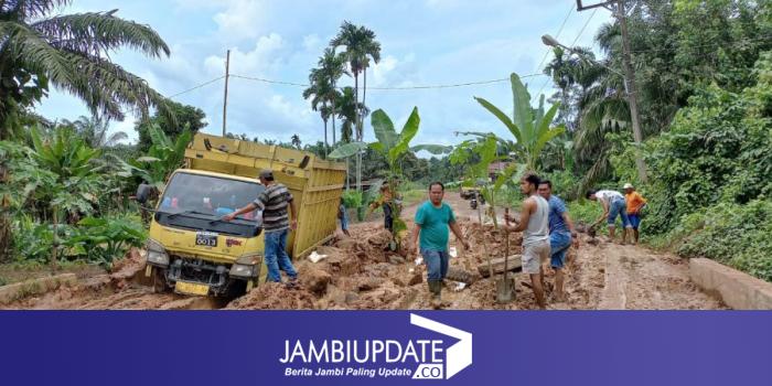 Pohon pisang dan batang sawit itu sengaja ditanam warga sebagai bentuk protes atas rusaknya jalan yang tak kunjung dibenahi. Mereka menuntut Pemkab Muaro Jambi bertanggung jawab dan segera memperbaiki kerusakan jalan tersebut.