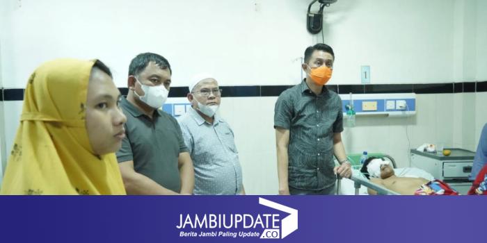 JAMBIUPDATE.CO, MUARO JAMBI- Pj Bupati Muaro Jambi Bachyuni Deliansyah menjenguk warga Desa Suka Damai, Kecamatan Mestong yang tengah dirawat di RSUD Raden Mattaher Jambi setelah diserang beruang liar beberapa hari lalu.