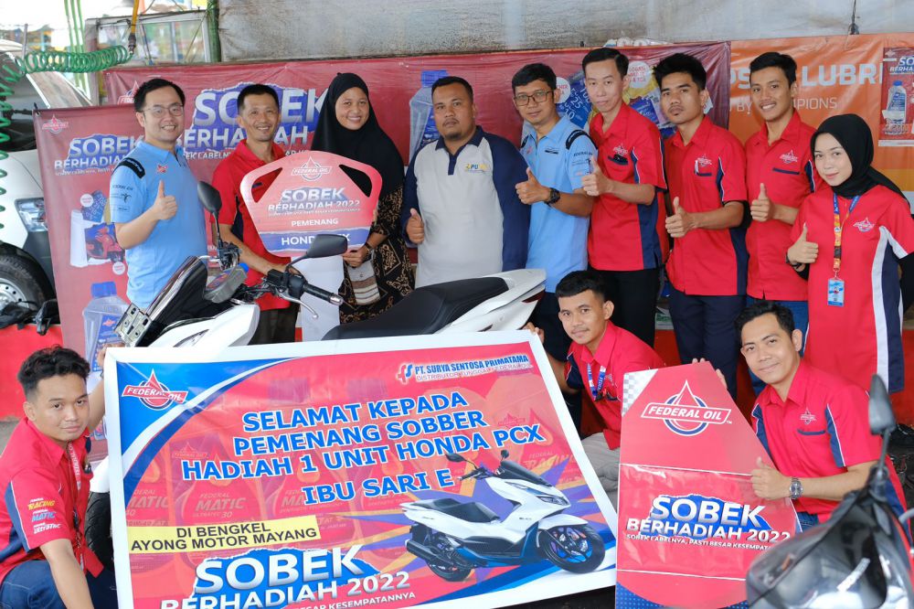 Setelah konsumen dari berbagai wilayah di Indonesia berhasil membawa pulang motor matic, kali ini konsumen asal Jambi dan Bekasi berhasil memenangkan hadiah masing-masing 1 unit motor matic Honda PCX, yaitu Fitri Sari asal Jambi setelah mengganti pelumas motornya di Federal Oil™ Center Ayong Motor, dan juga Yanti warga Bekasi setelah mengganti pelumas motornya di Federal Oil™Center Ali Motor. Keduanya merupakan konsumen setia produk Federal Oil™ yang rutin mengganti pelumas motornya sesuai saran dari rekomendasi ahli, dan sekaligus mendapatkan keberuntungan menang hadiah motor matic.