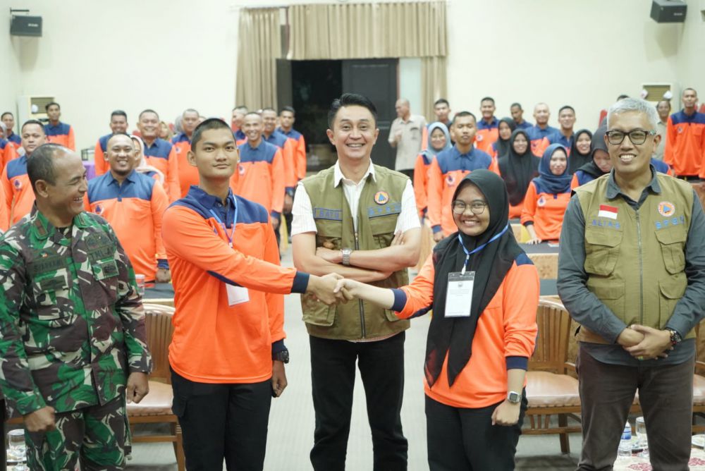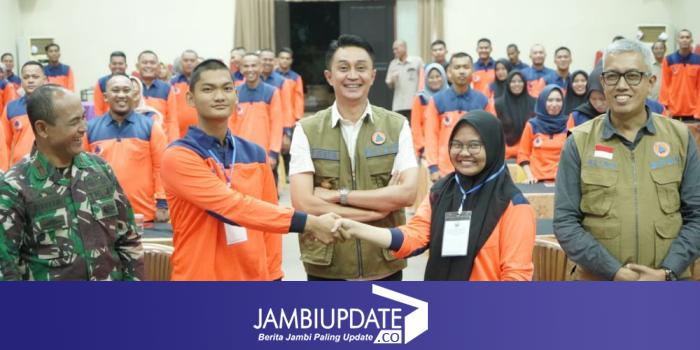 Pj Bupati Muaro Jambi Bachyuni Deliansyah didampingi Kalaksa BPBD Kabupaten Muaro Jambi Alias, membuka Pelatihan Pemantapan Anggota Tim Reaksi Cepat (TRC) Kabupaten Muaro Jambi Tahun Anggaran 2023.