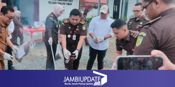 JAMBIUPDATE.CO, MUARASABAK - Kejaksaan Negeri (Kejari) Kabupaten Tanjabtim menggelar pemusnahan barang bukti perkara yang Inkracht Van Gewijsde dari tahun 2019 hingga 2022, Senin (13/3) sore.