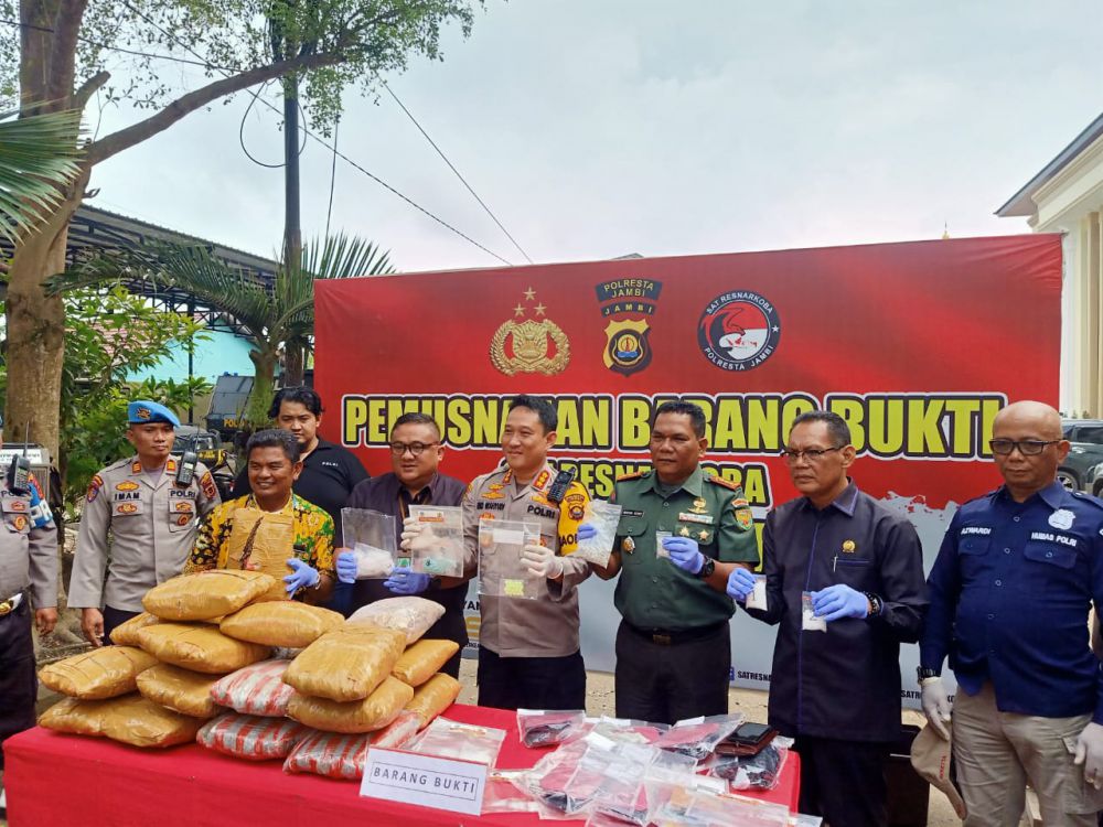 Kapolresta Jambi, Kombes Pol Eko Wahyudi mengatakan, barang bukti narkotika yang dimusnahkan ini merupakan hasil pengungkapan kasus dari September 2022 - 4 Maret 2023.