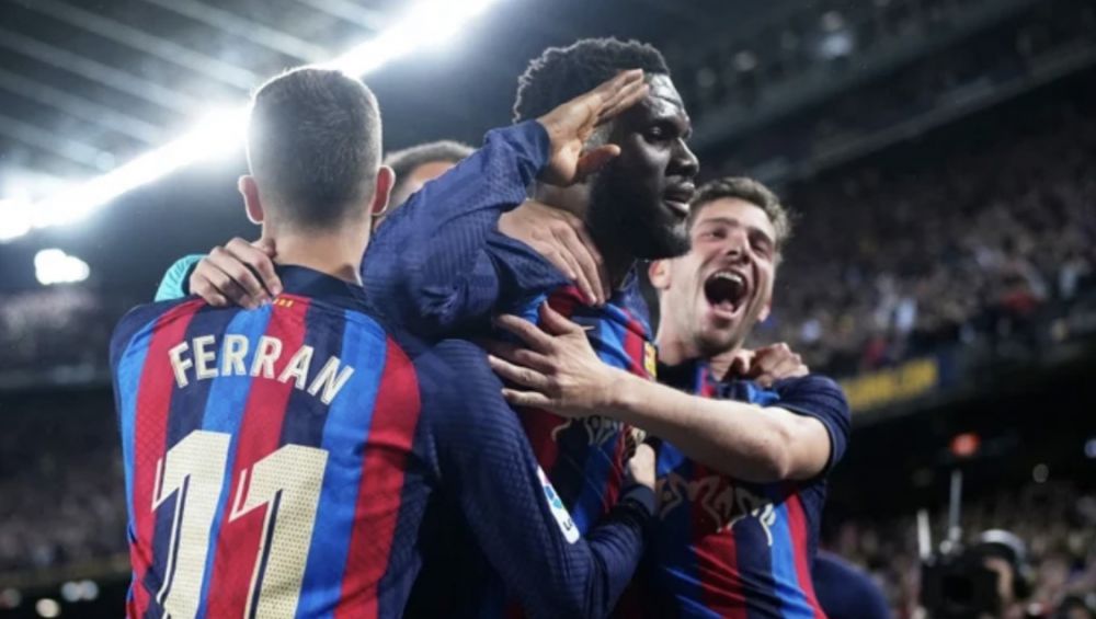 Franck Kessie merayakan golnya di El Clasico (Live Score)