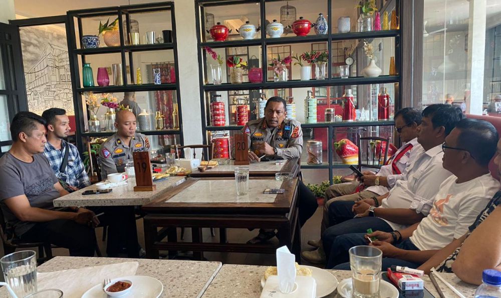 JAMBIUPDATE.CO, JAMBI - Direktur Lalu Lintas Polda Jambi Kombes Pol Dhafi didampingi Kasubdit Kamsel Ditlantas Polda Jambi Kompol Agung Asmara dan AKP Eko menggelar silaturahmi bersama pengurus Serikat Media Siber Indonesia (SMSI) Provinsi Jambi disalah satu Cafe yang ada di Kota Jambi, Selasa (21/3/23).