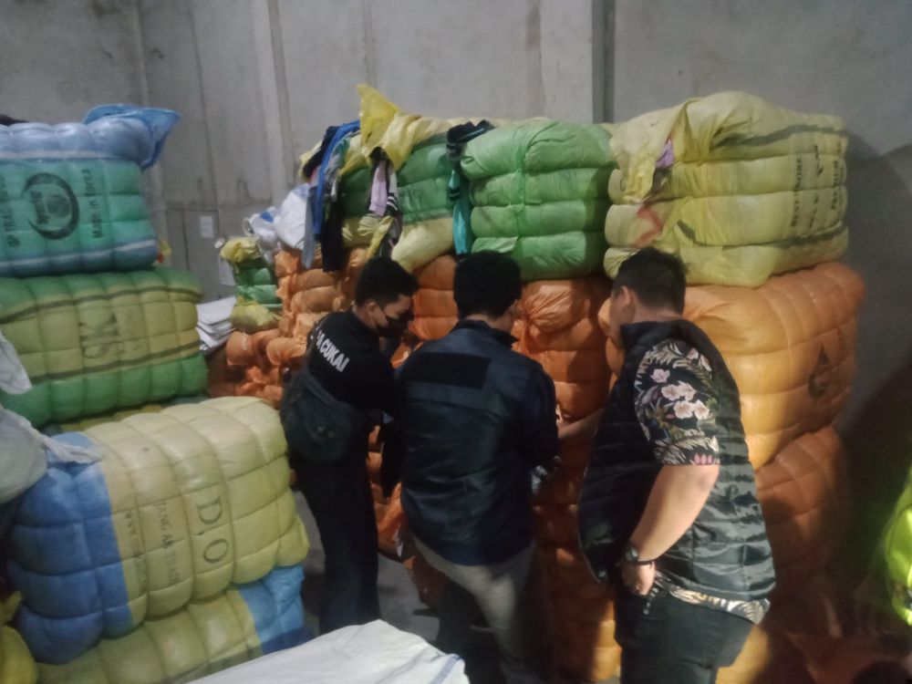 "Awalnya kita mendapatkan informasi ada tempat penyimpanan pakaian bekas impor dan arahnya di komplek pergudangan ini,kita lakukan pemeriksaan dan sementara amankan 134 ball yang diduga pakaian bekas impor dari luar negeri, " katanya.