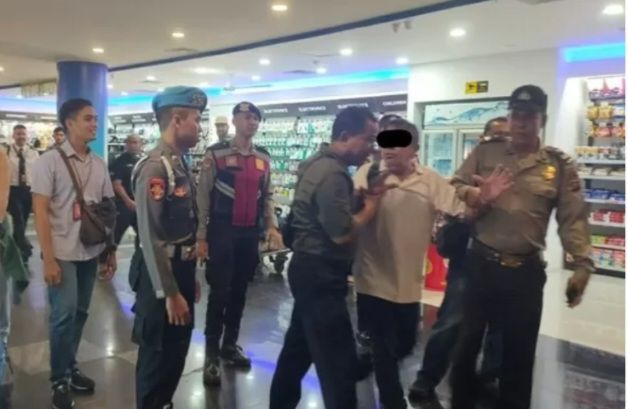 Saat diamankan oleh petugas Polres Kawasan Bandara I Gusti Ngurah Rai bersama Avsec PT Angkasa Pura, Perwira Pengawas (Pawas) Polres Kawasan Bandara Internasional I Gusti Ngurah Rai Ipda A.A. Alit Arnaya dalam keterangannya di Denpasar, Bali, Sabtu, pria tersebut diduga mabuk saat baru tiba di Terminal Kedatangan Internasional Bandara I Gusti Ngurah Rai, Jumat (14/4) malam.