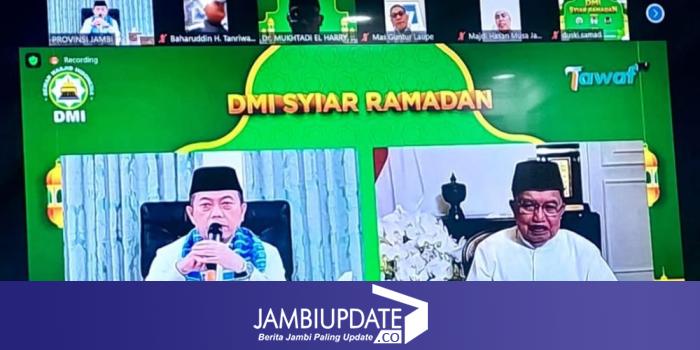 JAMBIUPDATE.CO, JAMBI - Gubernur Jambi Dr.Al Haris,S.Sos,MH mengikuti Syiar Ramadhan 1444 Hijriah Dewan Masjid Indonesia (DMI) Provinsi Jambi yang mengambil tema, Rabu, (19/4). Acara yang dilaksanakan secara virtual bersama PP DMI dihadiri juga oleh Ketua Umum PP DMI H. M Jusuf Kalla, Ketua Pimpinan Wilayah DMI Provinsi Jambi beserta Jajaran .Syiar Ramadhan ini dilaksanakan dari Ruang Zoom Rumah Dinas Gubernur Jambi.
