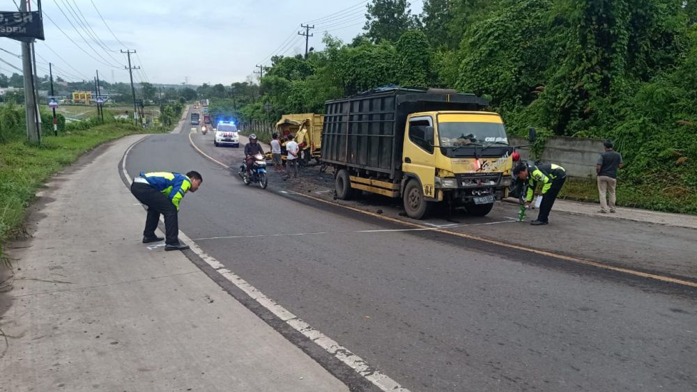 "Tiba - tiba dari arah belakang datang Mobil Mitsubishi Truck BH 8377 XU menabrak bagian belakang Mobil Mitsubishi Truck BH 8517 LF," katanya.
