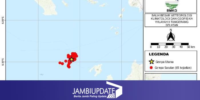 JAMBIUPDATE.CO, JAKARTA- BMKG mencatat 71 rangkaian gempa Banten selama sekitar 24 jam sejak yang pertama terjadi berkekuatan M5,2 pada Rabu siang lalu. Gempa memiliki pusatnya di Selat Sunda dengan hiposentrum yang tergolong dangkal, dipicu diduga oleh aktivitas Sesar Ujung Kulon.