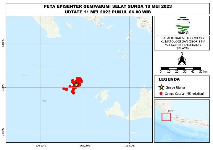 Gempa pertama tepatnya terjadi pada Rabu, pukul 11.24 WIB. Sebanyak 71 kali gempa kemudian dirangkum hingga Kamis siang, 11 Mei 2023, pukul 12.00 WIB. Rincian gempa-gempa susulan itu, menurut data Balai Besar Meteorologi Klimatologi dan Geofisika Wilayah II Tangerang Selatan, Banten, memiliki kekuatan terbbesar M5,1.