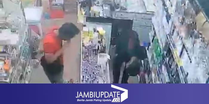 JAMBIUPDATE.CO, JAMBI - Dua orang laki-laki terekam kamera CCTV saat sedang melakukan aksi pencurian di Minimarket Mulia, kawasan Lebak Bandung, Kecamatan Jelutung, Kota Jambi.