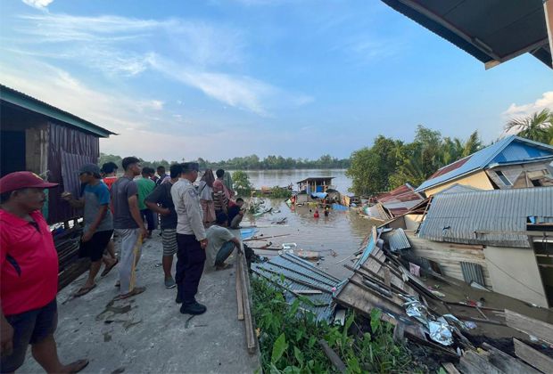iklan LONGSOR: Longsor di Kelurahan Senyerang, Kecamatan Senyerang Tanjabbar menyebabkan 9 bangunan roboh dan rusak berat.