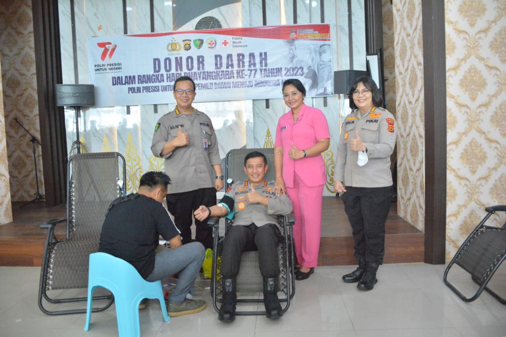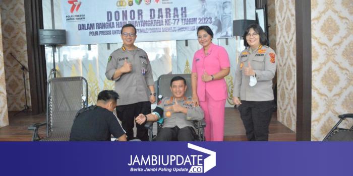 "Donor darah yang dilaksanakan oleh personel Polda Jambi ini, dalam rangka Hari Bhayangkara ke-77 tahun 2023," ucap Kapolda Jambi, Irjen Pol Rusdi Hartono.