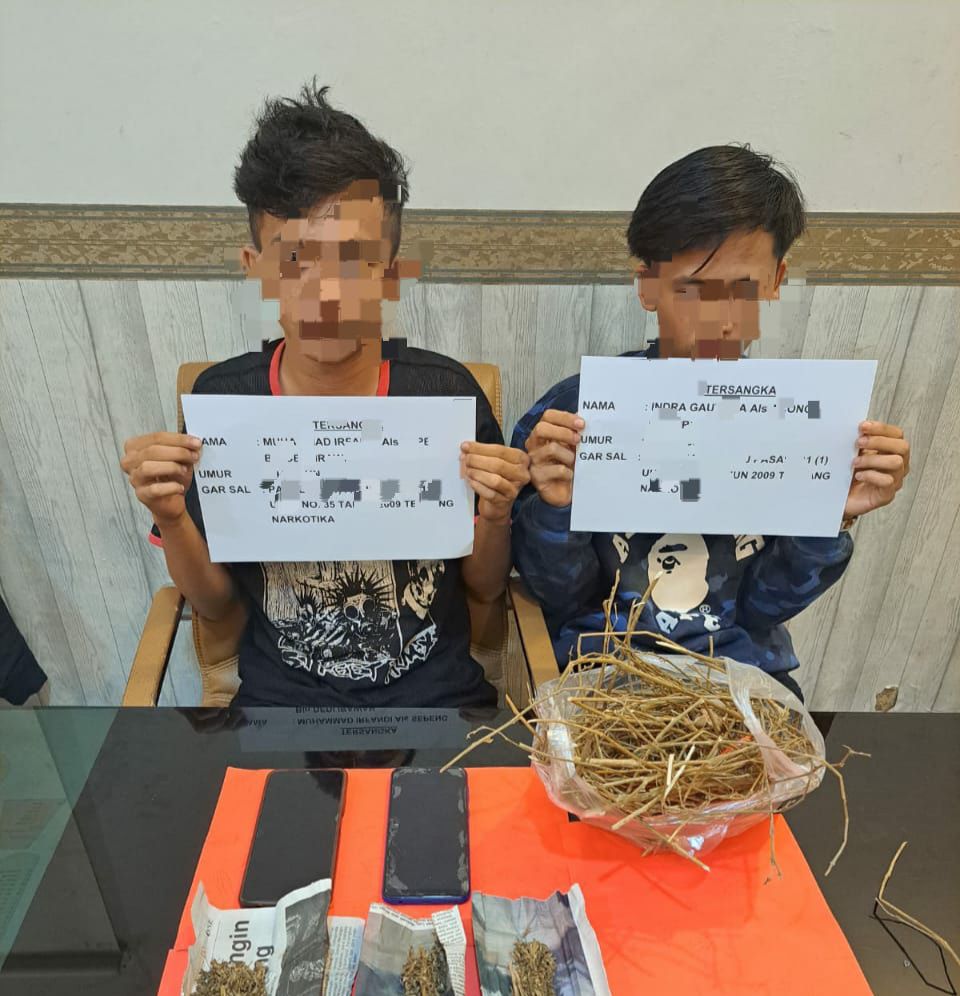 JAMBIUPDATE.CO, JAMBI - Dua orang pria pelaku penyalahgunaan narkotika jenis ganja berhasil dibekuk Tim Opsnal Satresnarkoba Polresta Jambi, pada Kamis (15/6) lalu sekira pukul 20.30 WIB malam.