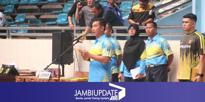 Pada kesempatan tersebut, Kapolda Jambi menyampaikan sambutannya sekaligus membuka pelaksanaan kegiatan Porprov Jambi Ke-XXIII cabor bola voly.