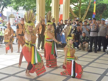 Pada kegiatan apel silaturahmi kebangsaan ini juga dilakukan penampilan tarian dari Suku Dayak Kalimantan Tengah.