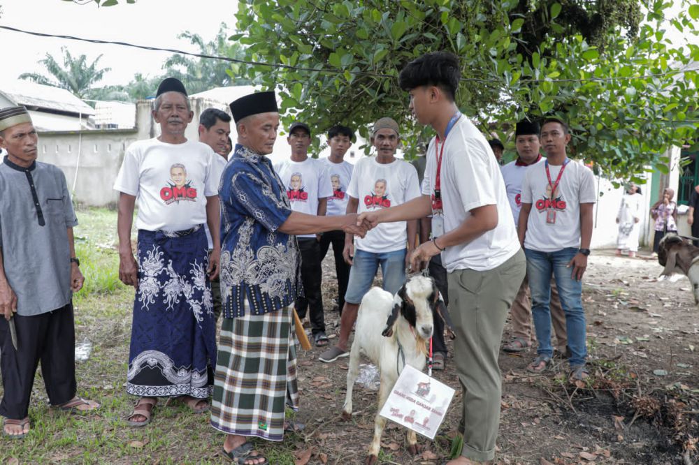 Menyambut Iduladha tahun ini, OMG Jambi memberikan bantuan kambing untuk warga di Desa Talang Belido, Kecamatan Sungai Gelam, Kabupaten Muaro Jambi.
