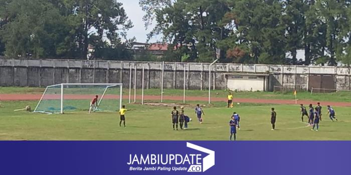 JAMBIUPDATE.CO, JAMBI - Pertandingan grup A cabor Sepakbola Porprov XVIII Jambi 2023, Rabu (5/7), mempertemukan Kota Jambi vs Tanjab Barat.