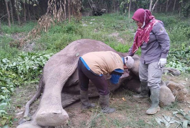 Namun, tim menyisihkan organ dalam gajah untuk dilakukan uji laboratorium untuk memastikan penyebab kematian gajah.