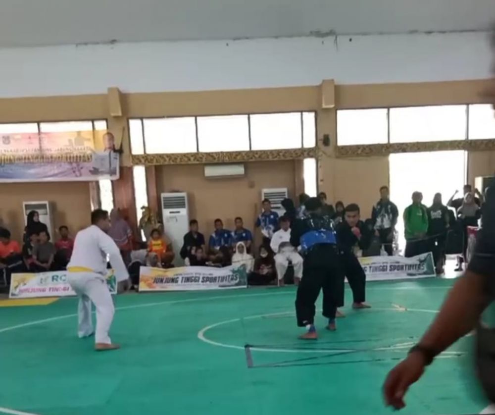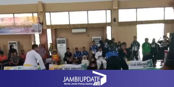 JAMBIUPDATE.CO, KERINCI- Semangat yang luar biasa dari Hendri Gunawan atlet silat Kerinci di Porprov Jambi 2023. Walaupun dalam kondisi tangannya patah sebelum tanding, dengan semangat juang yang tinggi untuk melanjutkan ke partai final akhirnya mampu mendapatkan emas kelas A putra mengalahkan atlet kota Sungai Penuh. Bahkan saat bertanding dia hanya lebih menggunakan tangan kanannya. Penampilannya pun membuat riuh para penonton final cabor silat.