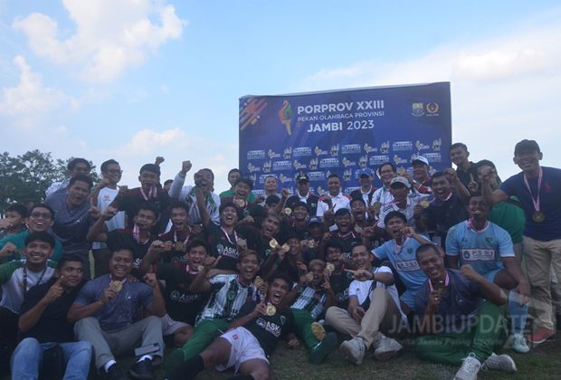 JAMBIUPDATE.CO, JAMBI-Tim Sepakbola Batanghari akhirnya berhasil mempersembahkan medali emas Porprov Jambi XXIII, setelah di dua edisi Porprov sebelumnya hanya mampu meraih perak.