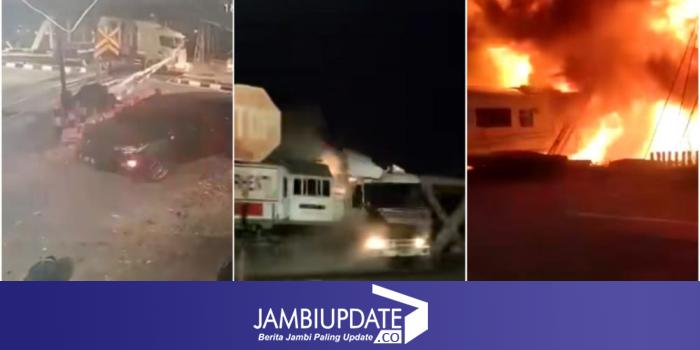 JAMBIUPDATE.CO, SEMARANG -Kronologis truk trailer mogok dihantam kereta api hingga terseret ke dalam rangka baja jembatan dan menimbulkan kobaran api.