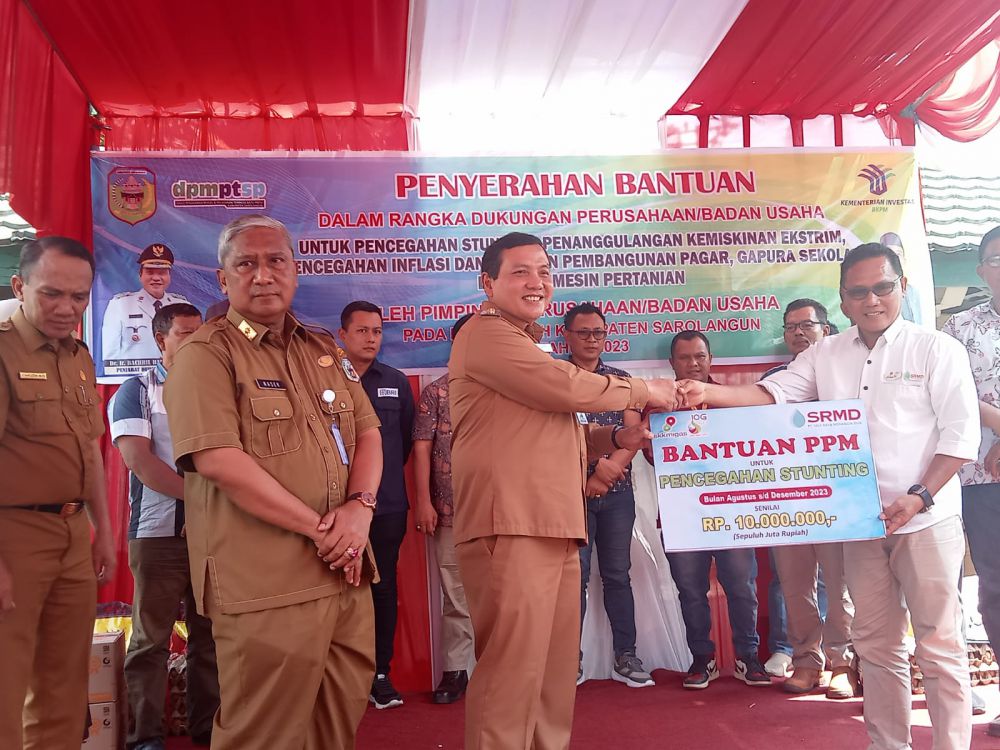 JAMBIUPDATE.CO, SAROLANGUN - SKK Migas-KKKS Sele Raya Merangin Dua (SRMD) menyerahkan bantuan untuk penanganan stunting dan pembangunan pagar sekolah SDN 110 Desa Lubuk Napal, Kecamatan Pauh.