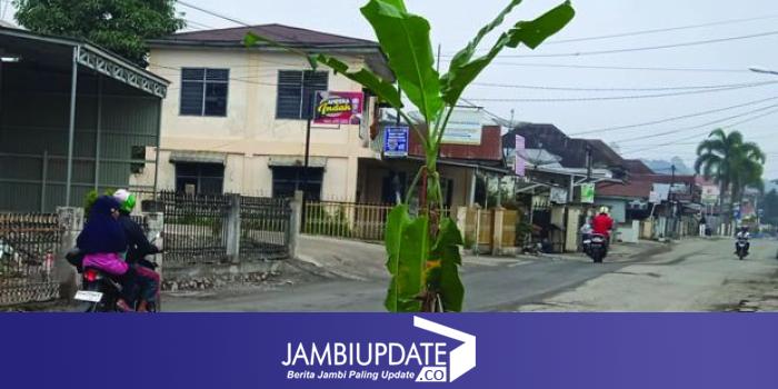 JAMBIUPDATE.CO, SUNGAIPENUH- Sejumlah warga Dusun Baru Kecamatan Sungai Bungkal Kota Sungai Penuh, kembali menanam pohon pisang di jalan H Bakri yang mengalami kerusakan parah.