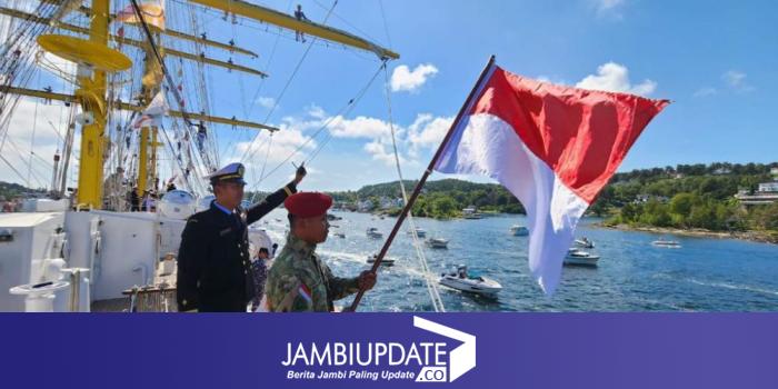 JAMBIUPDATE.CO, Norwegia, 6 Agustus 2023,- Setelah menyelesaikan etape terakhir event lomba kapal layar tiang tinggi bergengsi dunia Tall Ship Race 2023, KRI Bima Suci tiba di Port of Arendal Havn, Norwegia pada Kamis (03/08). Ada pemandangan yang sangat menarik, karena kedatangan KRI Bima Suci dari titik finish sampai dengan sandar diiringi oleh ratusan perahu pengunjung.