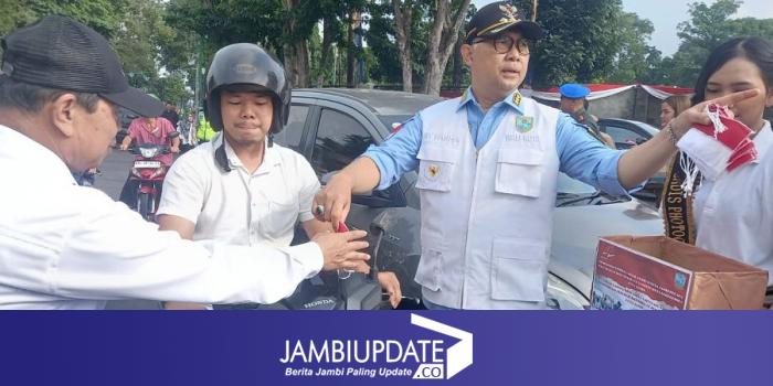 JAMBIUPDATE.CO, JAMBI – Menyambut hari kemerdekaan Republik Indonesia ke 78, Walikota Jambi Syarif Fasha membagikan bendera merah putih secara gratis di Bundaran Tugu Keris, Kota Baru, Rabu (9/8).